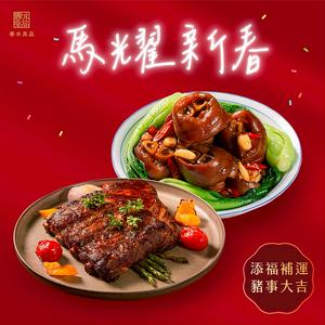 【春水良品】春節送禮首選-豬事大吉組|春水功夫醬燒元蹄x1+春水私房秘製炭烤豬肋排x1