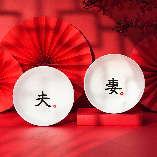 【Mao's樂陶陶】夫妻囍囍 雙碗顯影醬油碟禮盒組 | 熱血一號聯名 | 結婚禮物