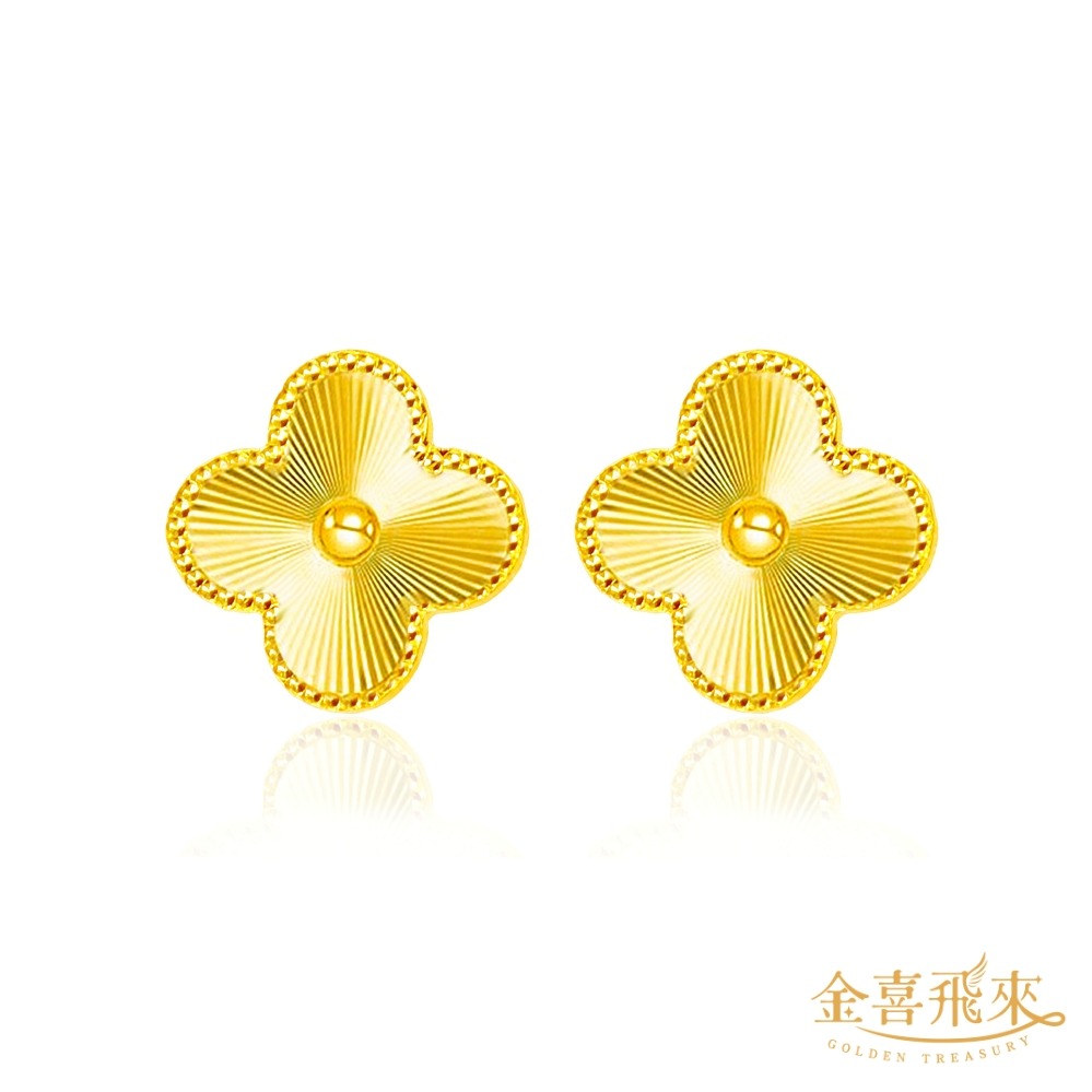 【金喜飛來】黃金耳環煥彩愛心幸運草一對(0.40錢±0.02) 【快速出貨】