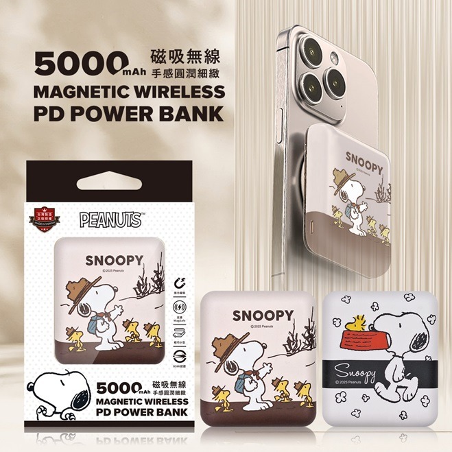 聖誕盲盒【Timo禮品館】SNOOPY史努比 20W PD超薄磁吸無線快充行動電源5000mAh