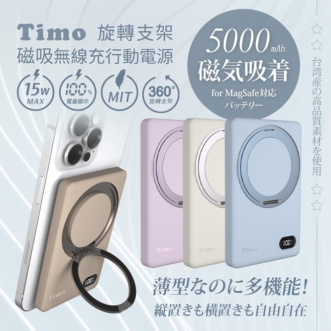 【Timo禮品館】360°旋轉真空吸附三軸摺疊磁吸手機支架(充電款)