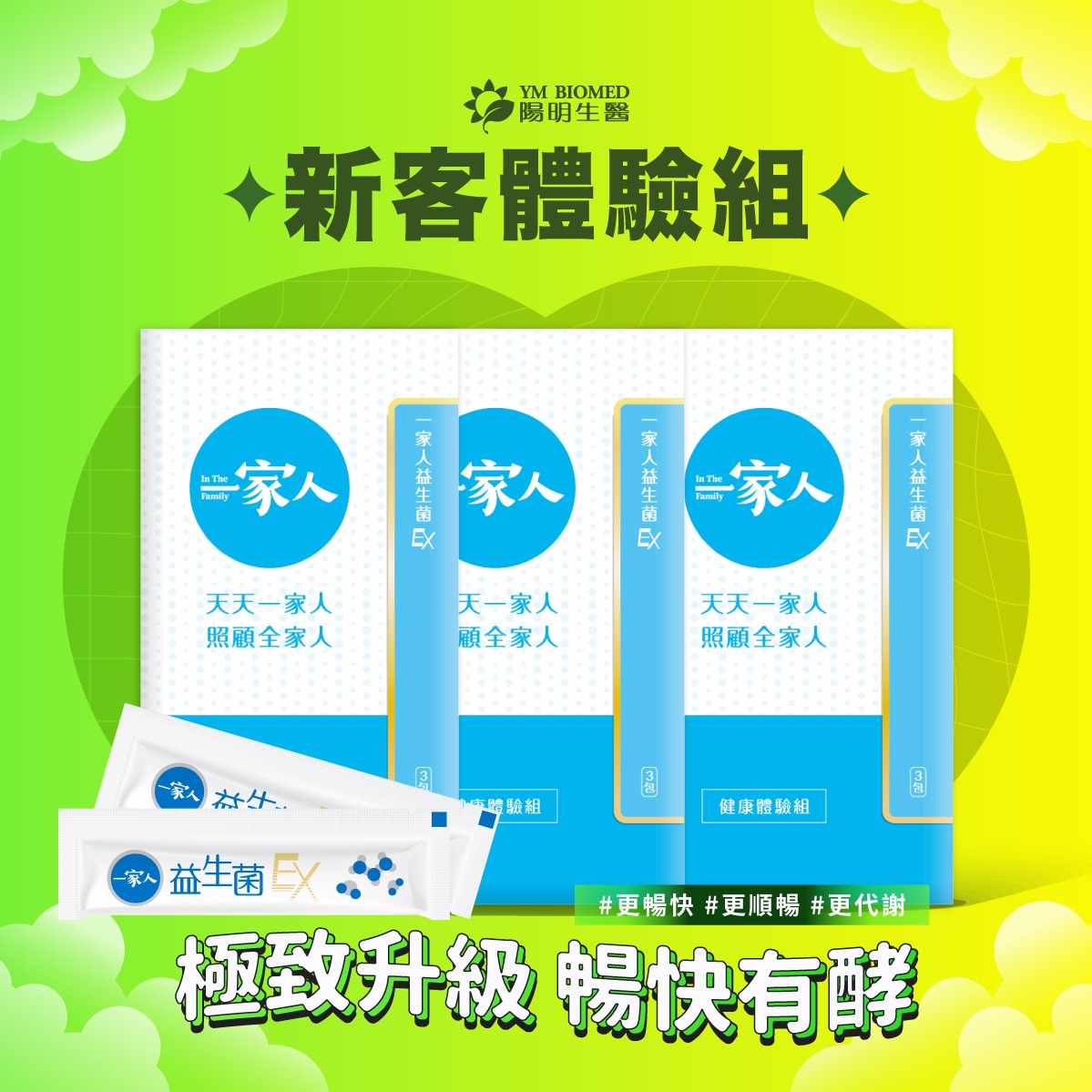 【YM BIOMED 陽明生醫】《新客體驗組》 一家人益生菌3入三盒