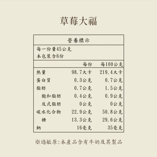 [草莓季]《麻吉爸》草莓大福-全素(每盒70g±5%x6入,共1盒)