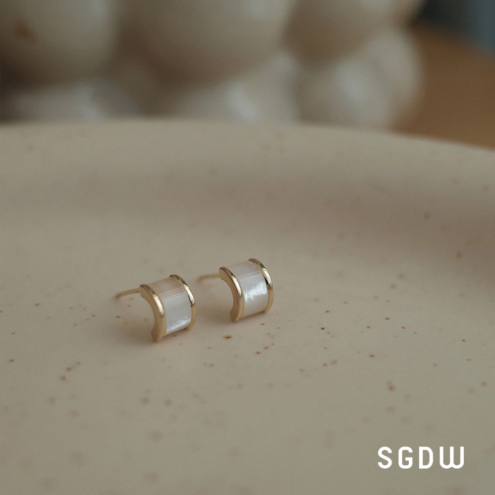 【SGDW】金色輕奢 杏葉珍珠耳環 925銀