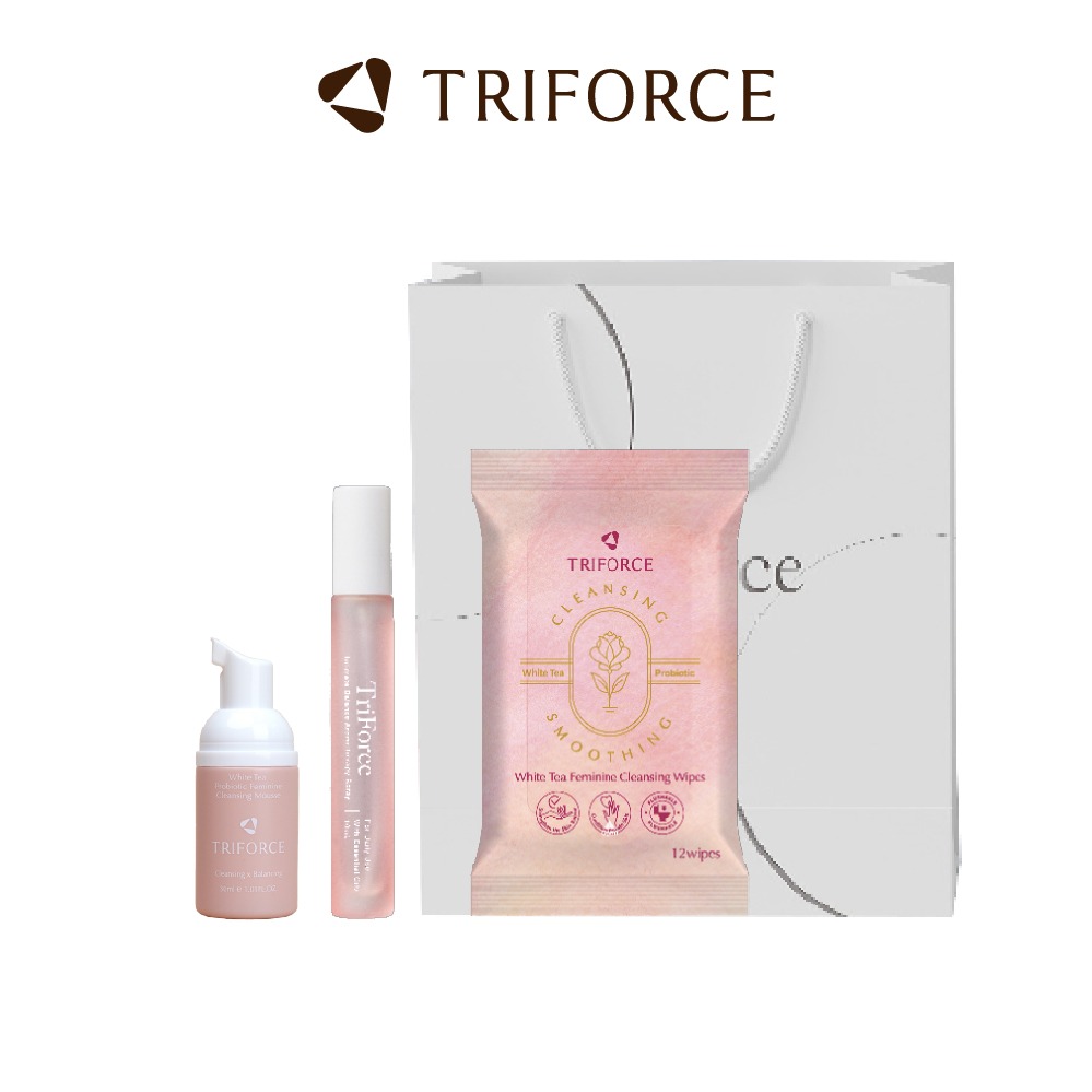 【TRIFORCE 翠芙思】寵愛私密呵護多件套組(寵愛私密調理凝露80mL+白茶私密清潔可沖式濕紙巾12抽+私密亮白水潤凝露體驗包*2入)[快速出貨]