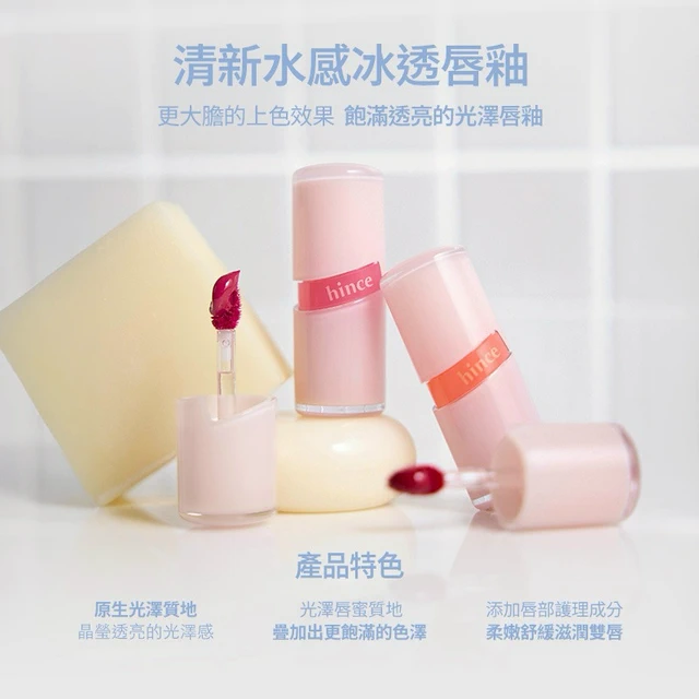 快速出貨【hince】有你真好!清新水感冰透唇釉+高光棒+Dewy Ball提袋+粉色皮革化妝包+hince限定貼紙(感謝禮/心意謝禮/朋友禮物/送朋友)