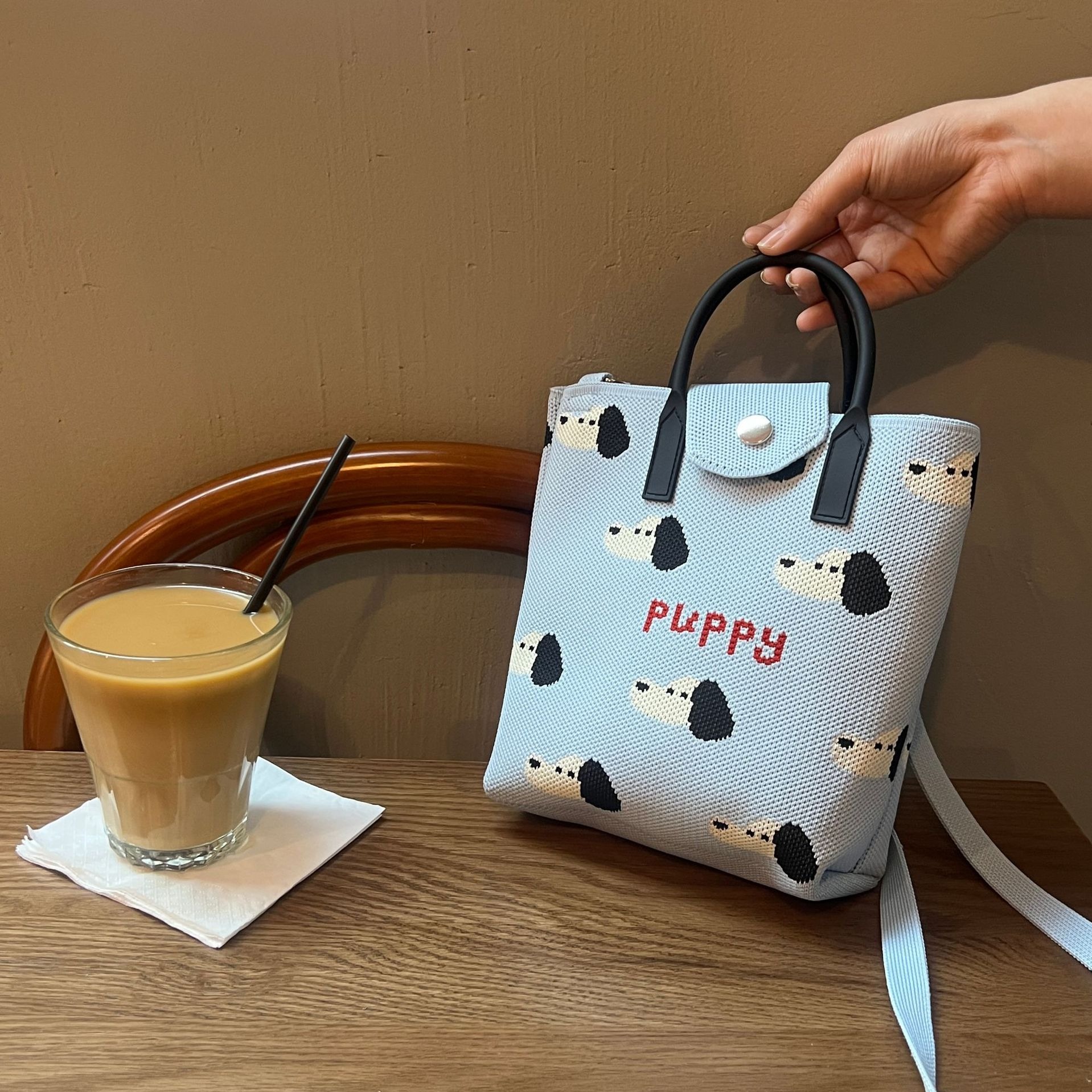 三日內出貨❤️愛心公益【幸福狗流浪中途協會】法鬥針織手機飲料包 可裝水瓶小巧便攜 斜肩手提包 百搭多巴胺包 幫助苗栗流浪貓狗協會 情人節 禮物 生日禮物 咪妮手作甜點店公益合作