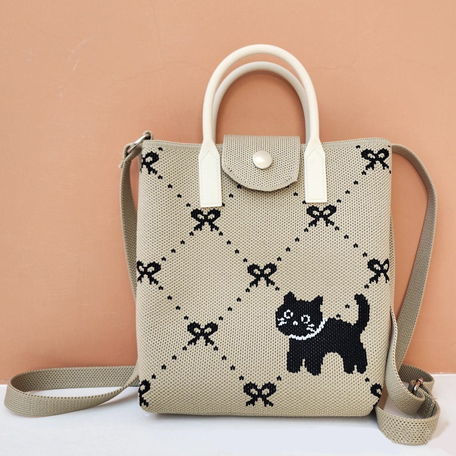 三日內出貨❤️愛心公益【幸福狗流浪中途協會】粉紅襪黑貓針織斜跨手機包 迷你手提包 單肩小側背包 手拎包 幫助苗栗流浪貓狗協會 情人節 禮物 生日禮物 咪妮手作甜點店公益合作