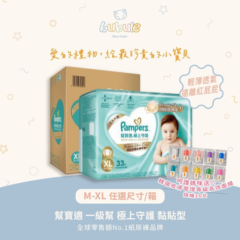 🚚快速出貨 新生彌月禮【布布樂Bubule】尿布濕巾箱購組 幫寶適一級幫極上守護黏貼(M~XL任選/箱)+純水99嬰兒溼紙巾補充包(厚型80抽 12包/箱)