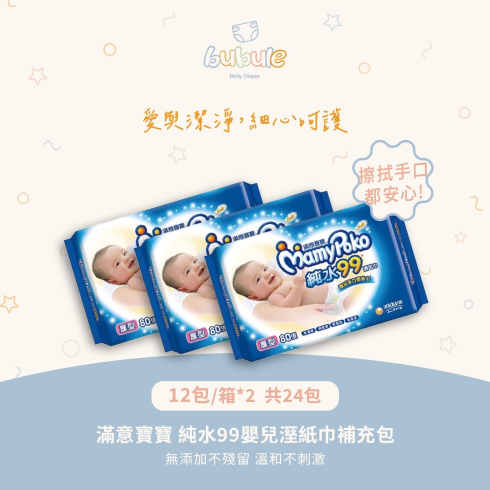 🚚快速出貨 彌月禮【布布樂Bubule】滿意寶寶極上呵護嬰兒濕紙巾12包/箱 X2 共24包 送隨機精美贈品 G2