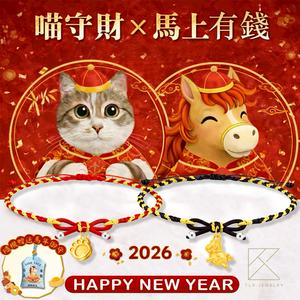【快速出貨】【TLH】黃金墜編織蝴蝶結手繩 純金999 喵守財 × 馬上有錢 約重0.07錢±0.02 隨機贈送馬年御守 (馬年 過年 送禮)