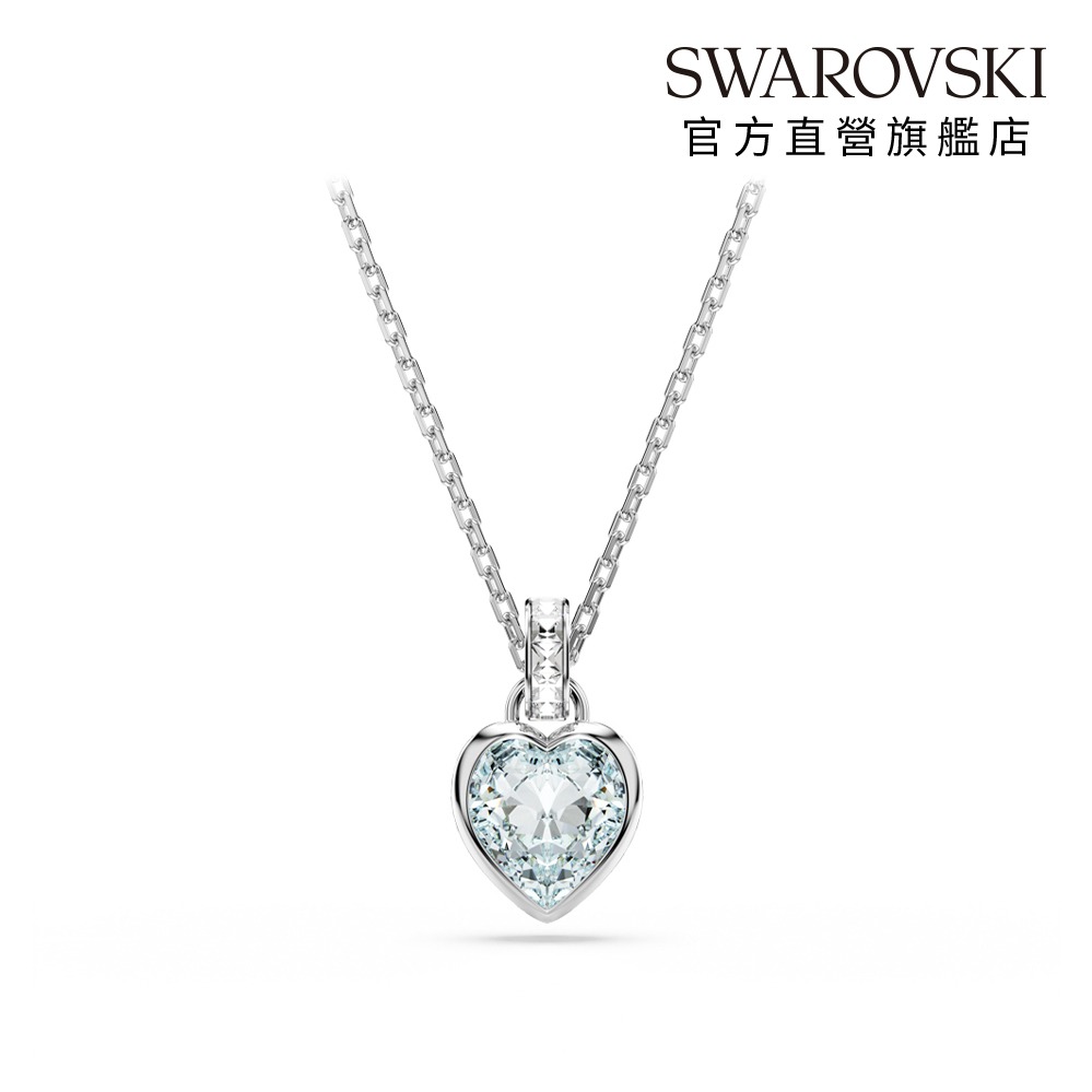 【客製化卡片】【SWAROVSKI 施華洛世奇】Una 項鏈 圓形切割 藍色 鍍白金色