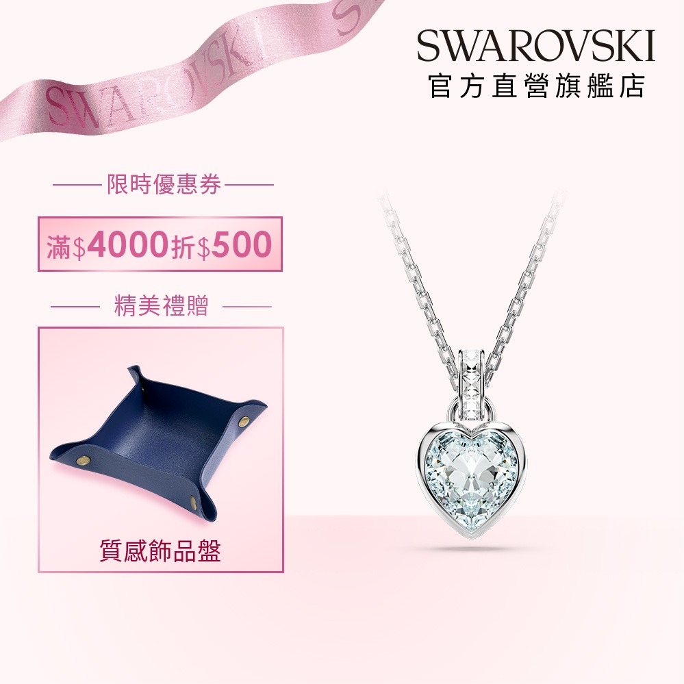【SWAROVSKI 施華洛世奇】Lifelong Heart 鏈墜 心形 白色 鍍玫瑰金色
