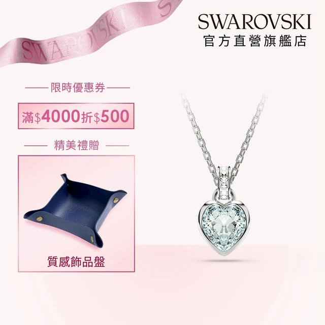 【SWAROVSKI 施華洛世奇】Una 項鏈 幸運草 白色鍍玫瑰金色/藍色鍍白金色(2色任選) 贈質感首飾盤