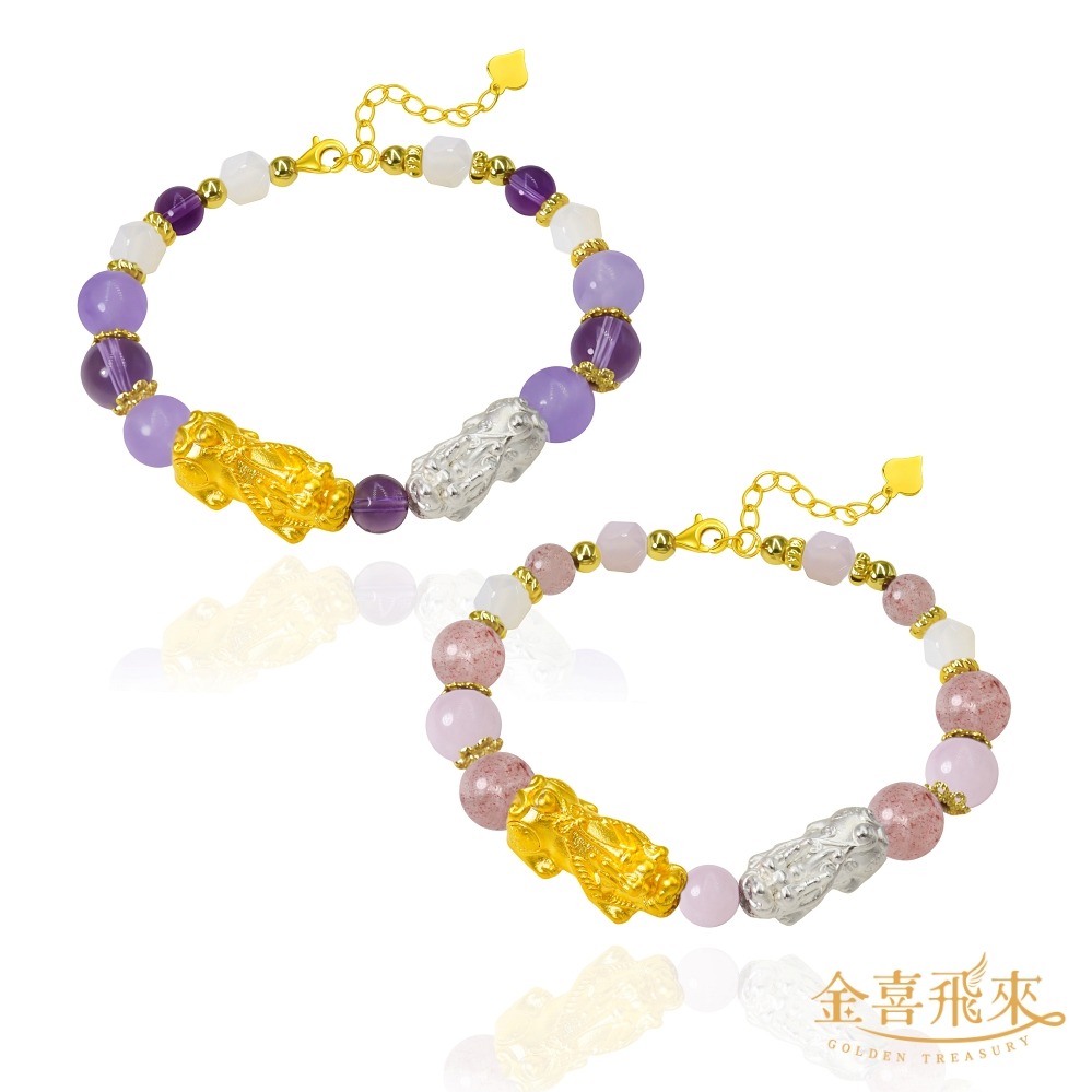 【金喜飛來】黃金手鍊十二生肖水晶串多款選(0.07錢±0.03)【快速出貨】