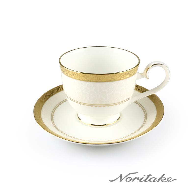 圓潤寓意圓滿,典藏一份細緻心意|生日|喬遷|新婚【日本Noritake】夏日金輪西式24.5cm圓盤2入禮盒組(骨瓷)
