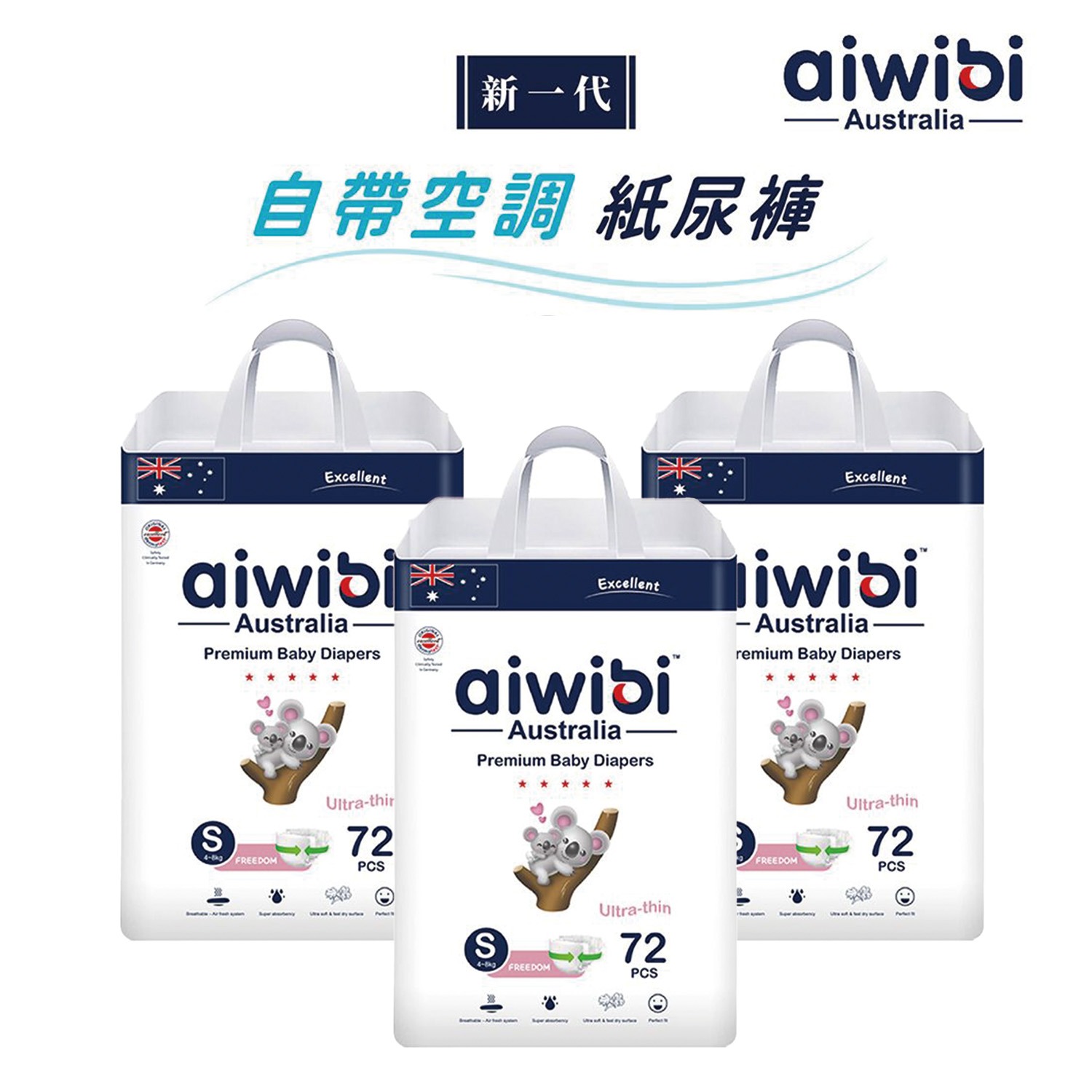 【布布樂Bubule】Aiwibi 澳洲母嬰品牌 夜用甄柔瞬吸紙尿褲(黏貼型) M 54入x3包/箱 彌月禮 新生賀禮