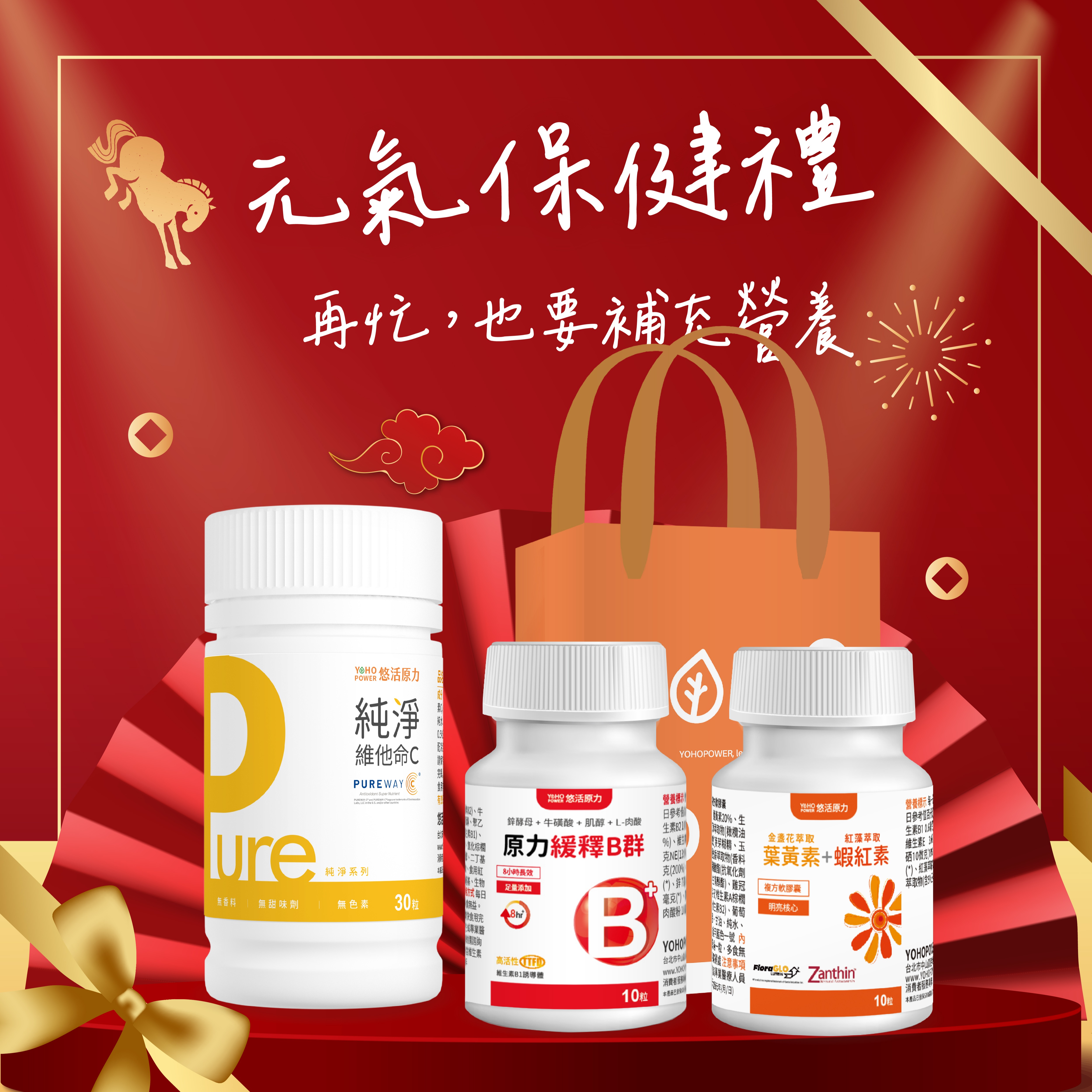 🚀快速出貨⚡元氣保健禮🎇新年禮🎁健康加馬【悠活原力-晶力提神組】葉黃素(30粒)+B群(60粒)附提袋|吳淡如真情推薦|呵護禮