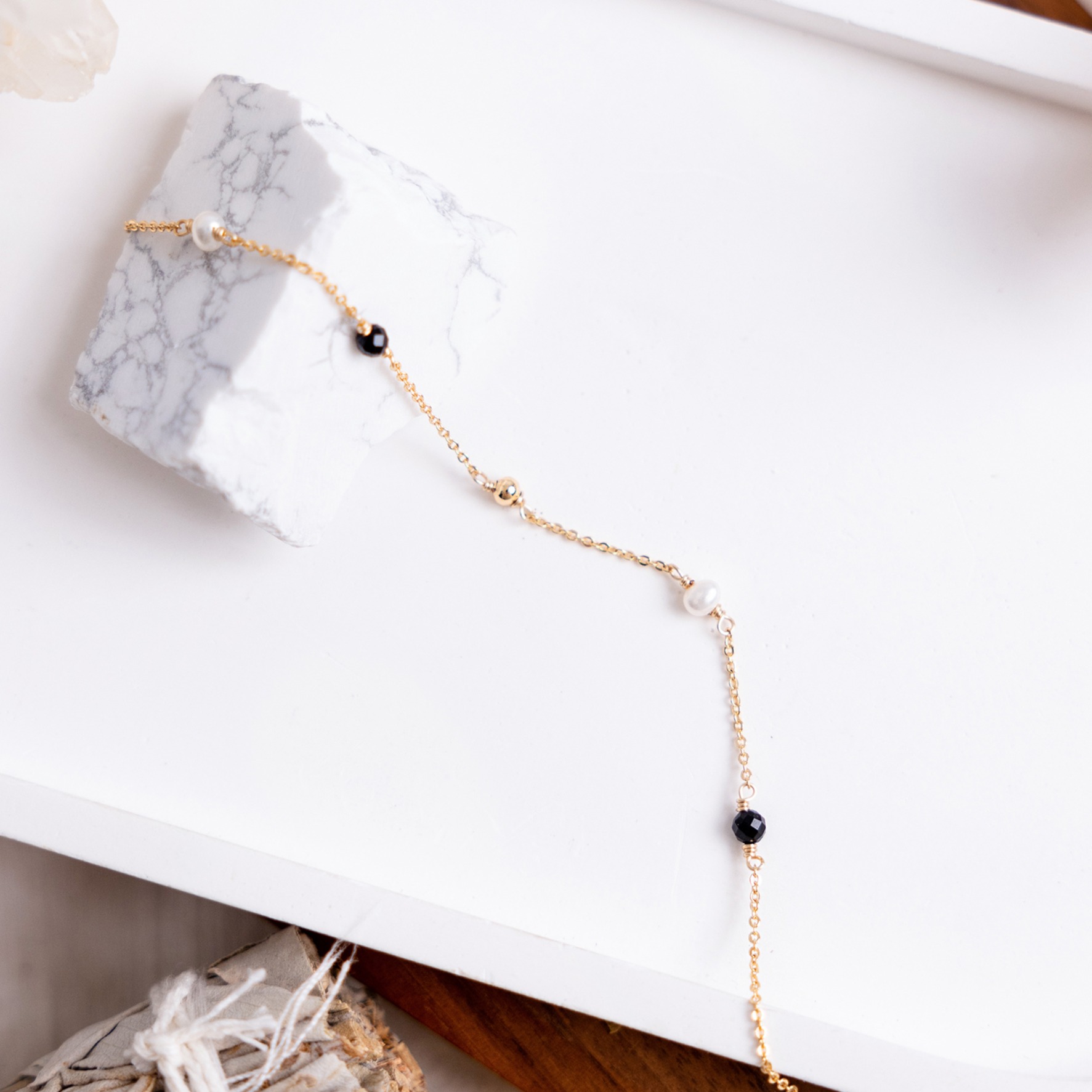 【Ficelle輕珠寶】夕陽下的心動旋律|拉長石 白水晶 淡水珍珠 堇青石 月光石 鋯石 黃銅鍍18K金 磁鐵扣 手鍊