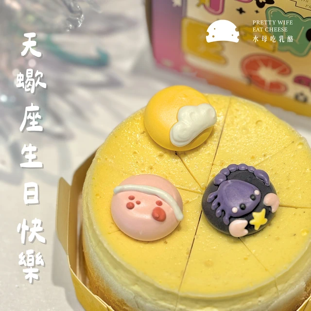 三日內出貨⭐夏天必吃【水母吃乳酪】雪絨乳酪蛋糕 (8切) 限量天蠍座手繪馬林糖/附贈生日帽/蠟燭