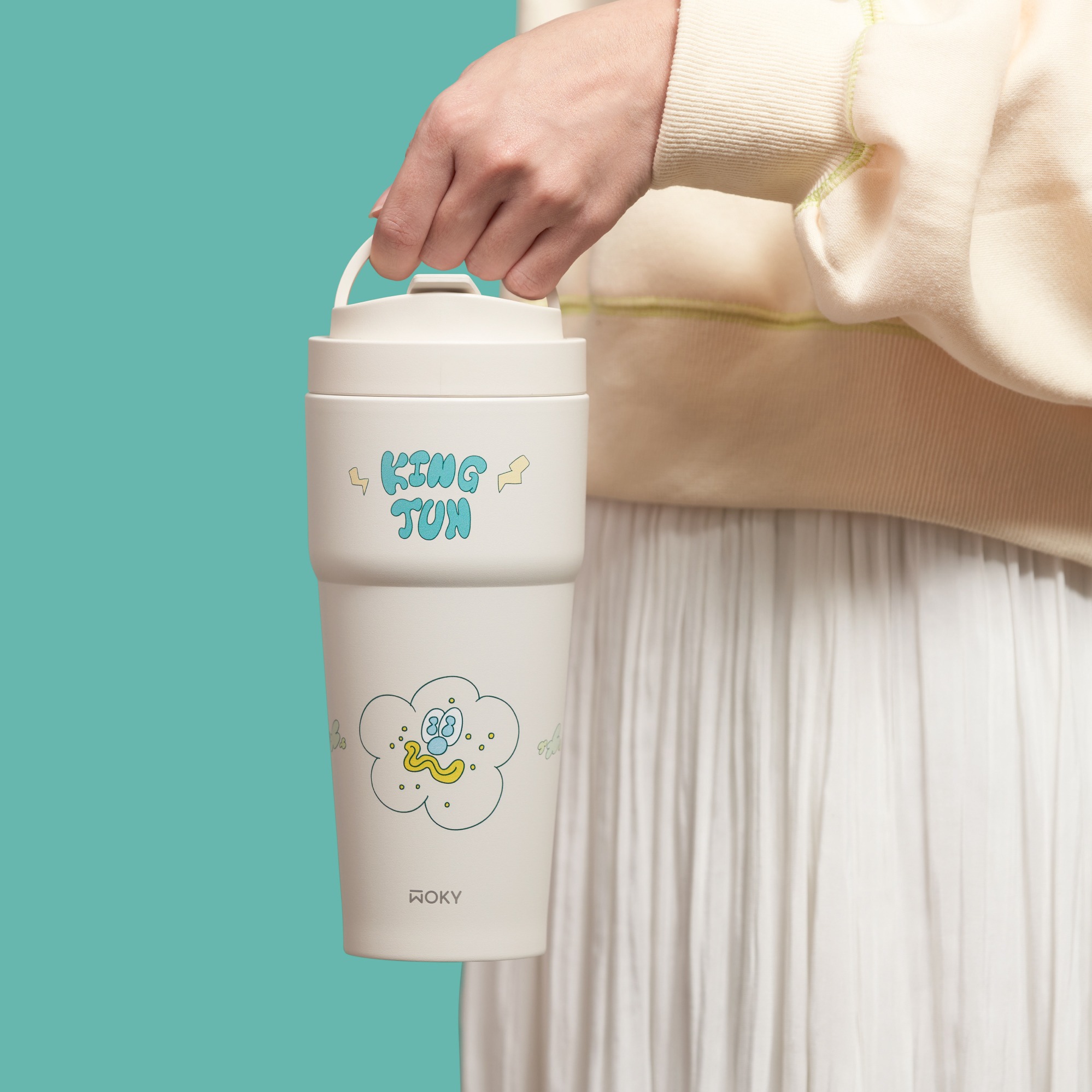 【WOKY 沃廚】WOKY x KINGJUN渾圓杯770ml(含渾圓杯+吸管塞+防水貼紙)