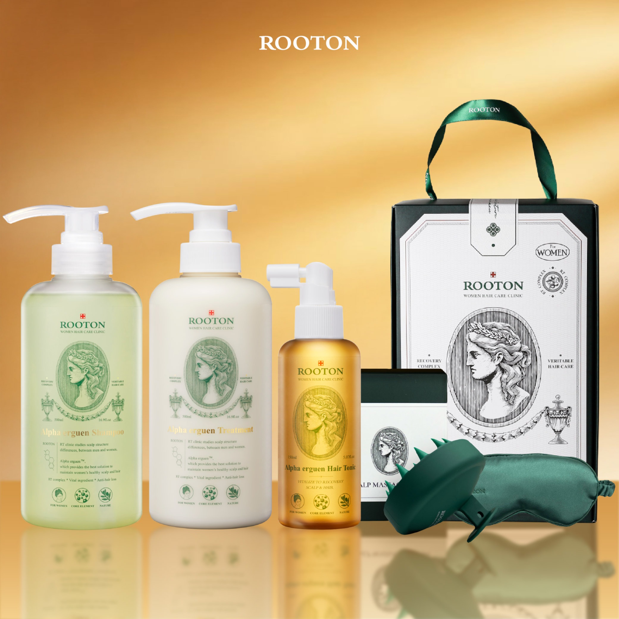快速出貨【ROOTON】夏季閨蜜好朋友!甦活植萃洗髮精70ml+喚活極萃雙效修護髮油8ml x2+喚活體驗包+晨霧化妝包+ROOTON燙金禮袋