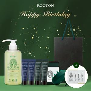 快速出貨【ROOTON】生日快樂!植萃洗髮精200ml+植萃洗髮精70ml+海藻洗髮精70ml+頭皮按摩梳+沐浴膠10ml x2+身體乳10ml x2+植萃手提禮盒(水瓶座生日禮物)