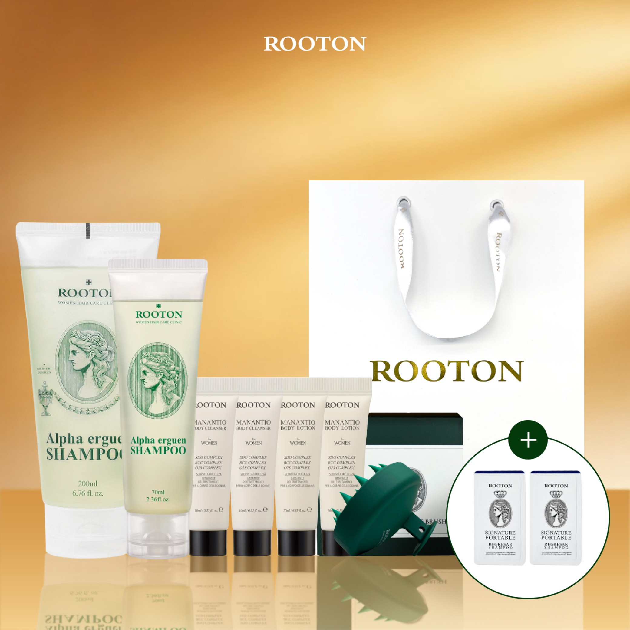 快速出貨【ROOTON】寵愛自己!甦活植萃洗髮精500ml+甦活植萃護髮素500ml+甦活植萃髮根噴霧150ml+頭皮按摩梳+沐浴膠10ml x2+身體乳10ml x2+植萃手提禮盒