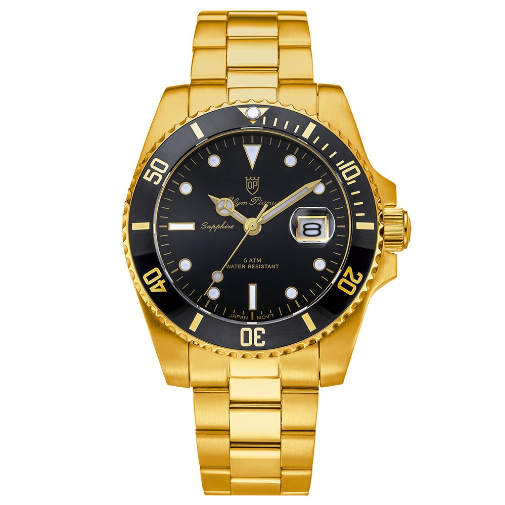 【Olym Pianus奧柏】水鬼豪邁霸氣超強夜光運動型石英腕錶 899831GK 金色