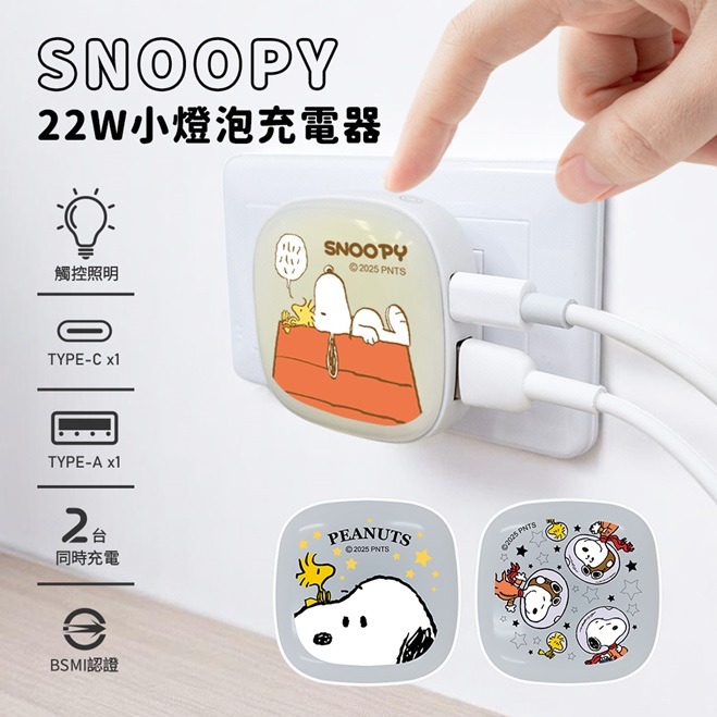 【Timo禮品館】SNOOPY史努比 Type-C + Lightning雙頭口袋充PD行動電源5000mAh