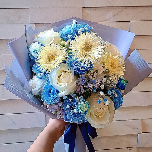 踏上新旅程【玉屋 TAMAYA】遼闊藍向日葵花束 代寫卡片 鮮花 生日花束 情人花束 送上美好祝福 祝福花禮 花束推薦