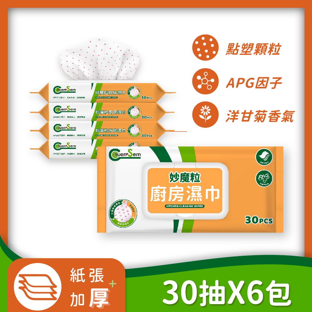 【Chuen Sern】淨魔力廚房濕巾 80抽x6包|輕鬆去油汙|廚房好幫手|