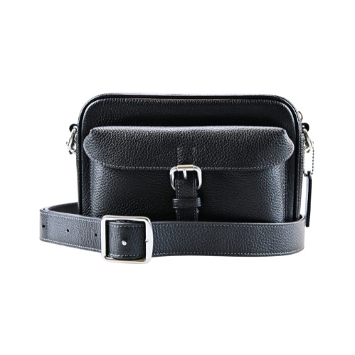 [平輸版] 【COACH】 GEORGIA 黑色荔枝紋梯形拉鍊斜背包 真品平輸