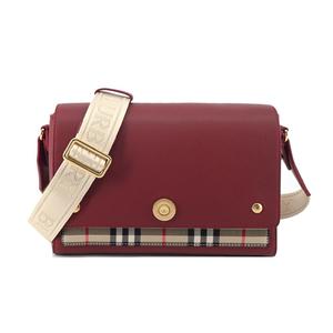 [平輸版] BURBERRY Horseferry小牛皮格紋帆布飾邊斜背包(紅棕)真品平輸