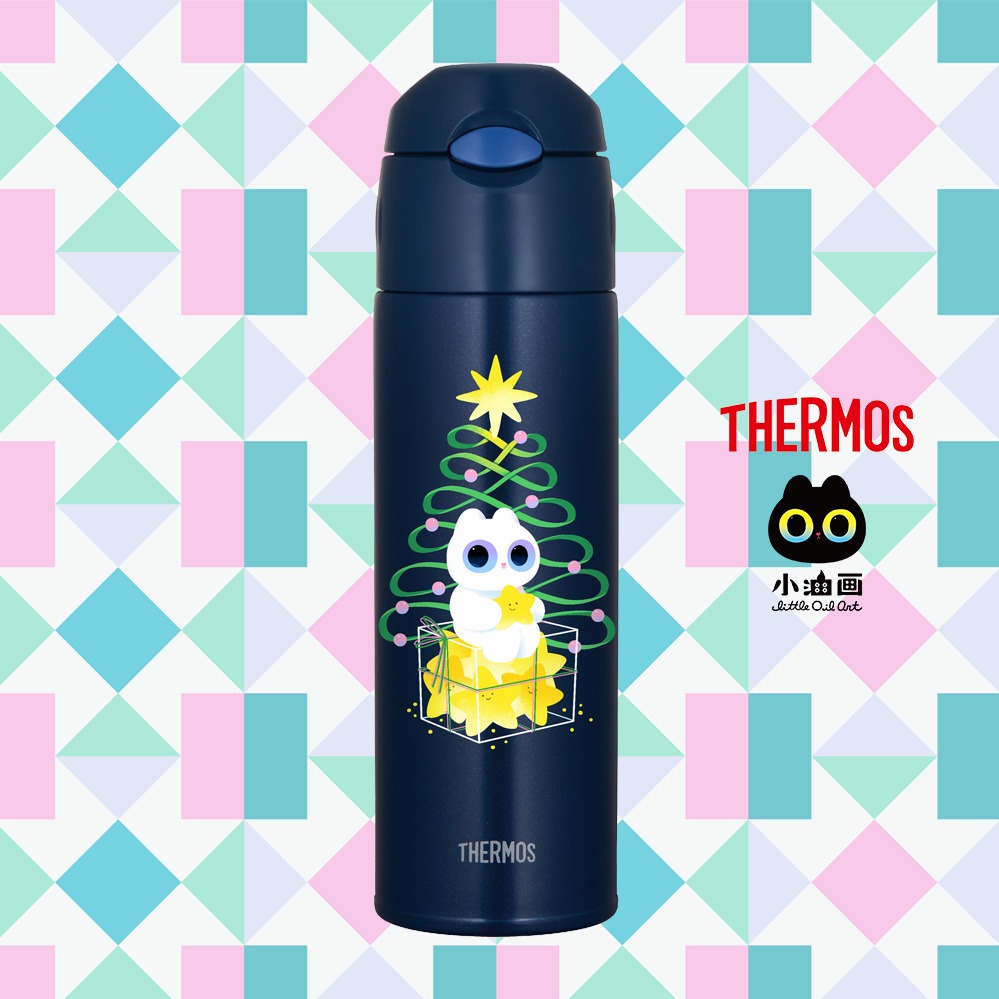 插畫家 小油画 限量款😺【THERMOS 膳魔師】彈蓋輕水瓶710ml(TP4329LOA-DB)