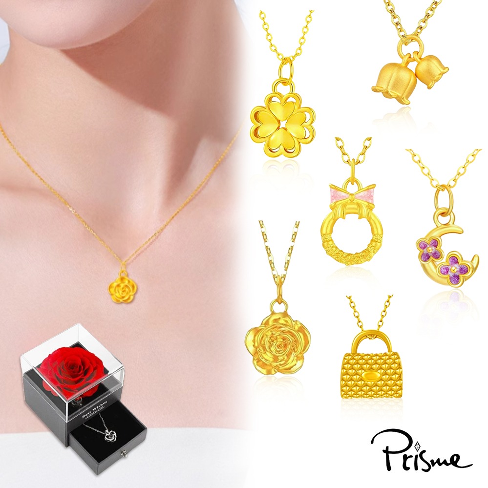 收禮者自選款式【Prisme Gold】情人節 送禮 純金9999鍊墜項鍊 贈玫瑰首飾禮盒 (多款任選) 金重:約0.02錢±0.01