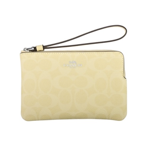 [平輸版] 【COACH】黑色豹紋印花杏黃色荔枝紋金屬馬車LOGO手掛零錢包 真品平輸