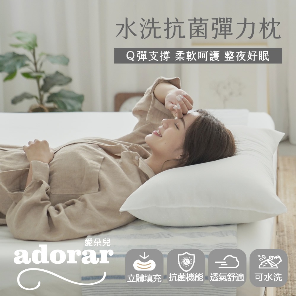 【快速出貨 】Adorar愛朵兒-中高型水洗抗菌彈力枕(1入)台灣製