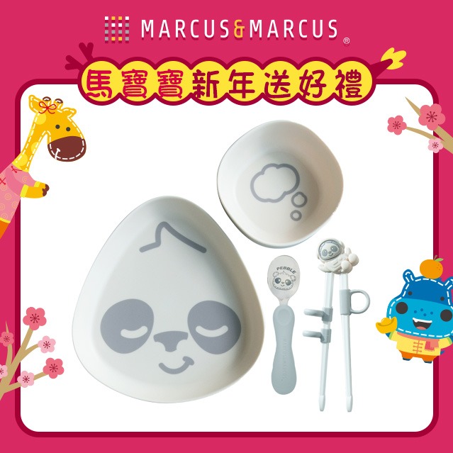 【MARCUS&MARCUS】動物樂園幼兒訓練學習筷含盒(河馬)