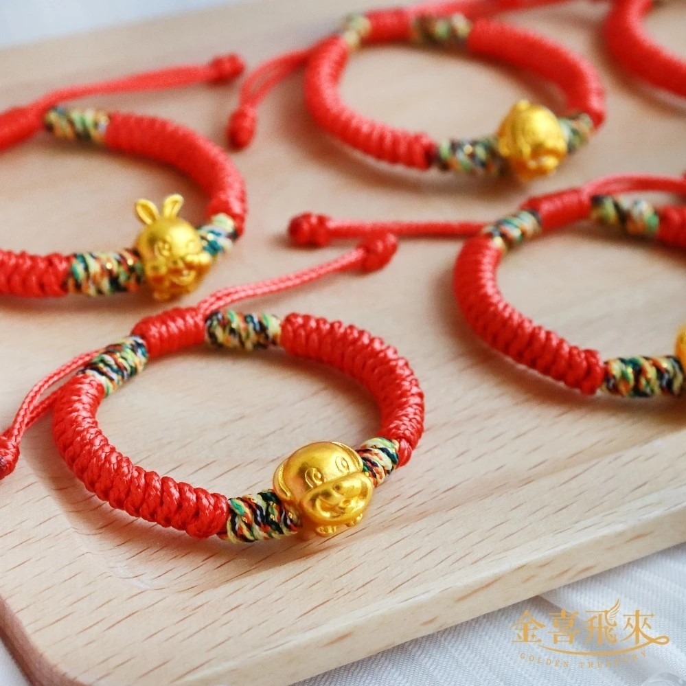 【快速出貨】【TLH】 黃金墜編織手鍊 純金999 花迎新歲 馬上開運 約重0.04錢±0.01 隨機贈送馬年御守 (馬年 過年)