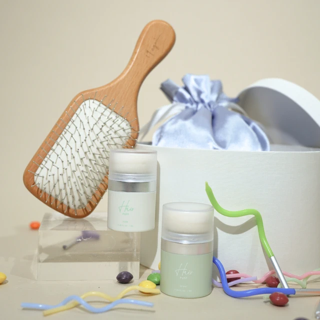 生日禮物推薦【19again】精緻髮品組-氣墊隨身梳+舒心果香護髮精華15ml (贈)大束口袋-送禮推薦