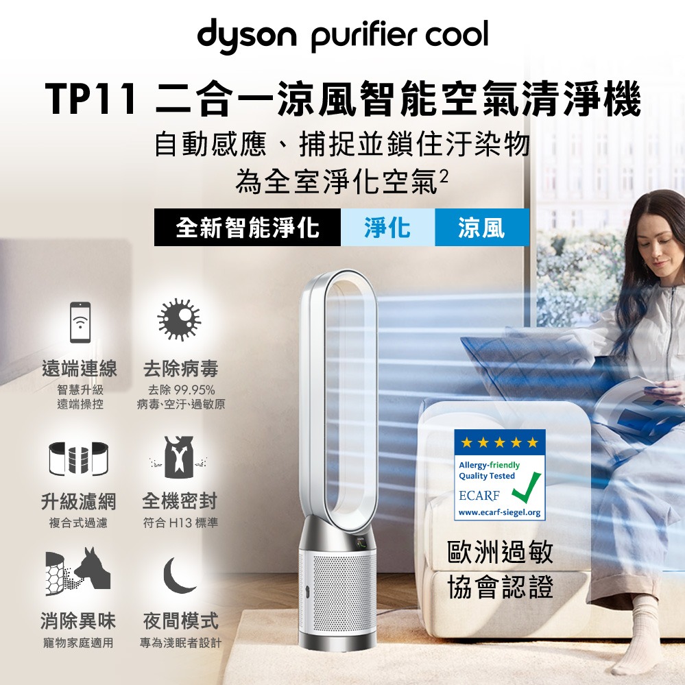 【戴森 Dyson】🎁生日禮物👩❤️👨TP12 甲醛NOx偵測涼風 空氣清淨機 (白金色)送HEPA濾網1入