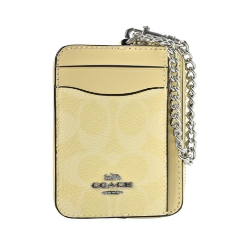 [平輸版] 【COACH】冰川藍C LOGO PVC拼接同色皮革鏈帶方型卡夾零錢包 真品平輸
