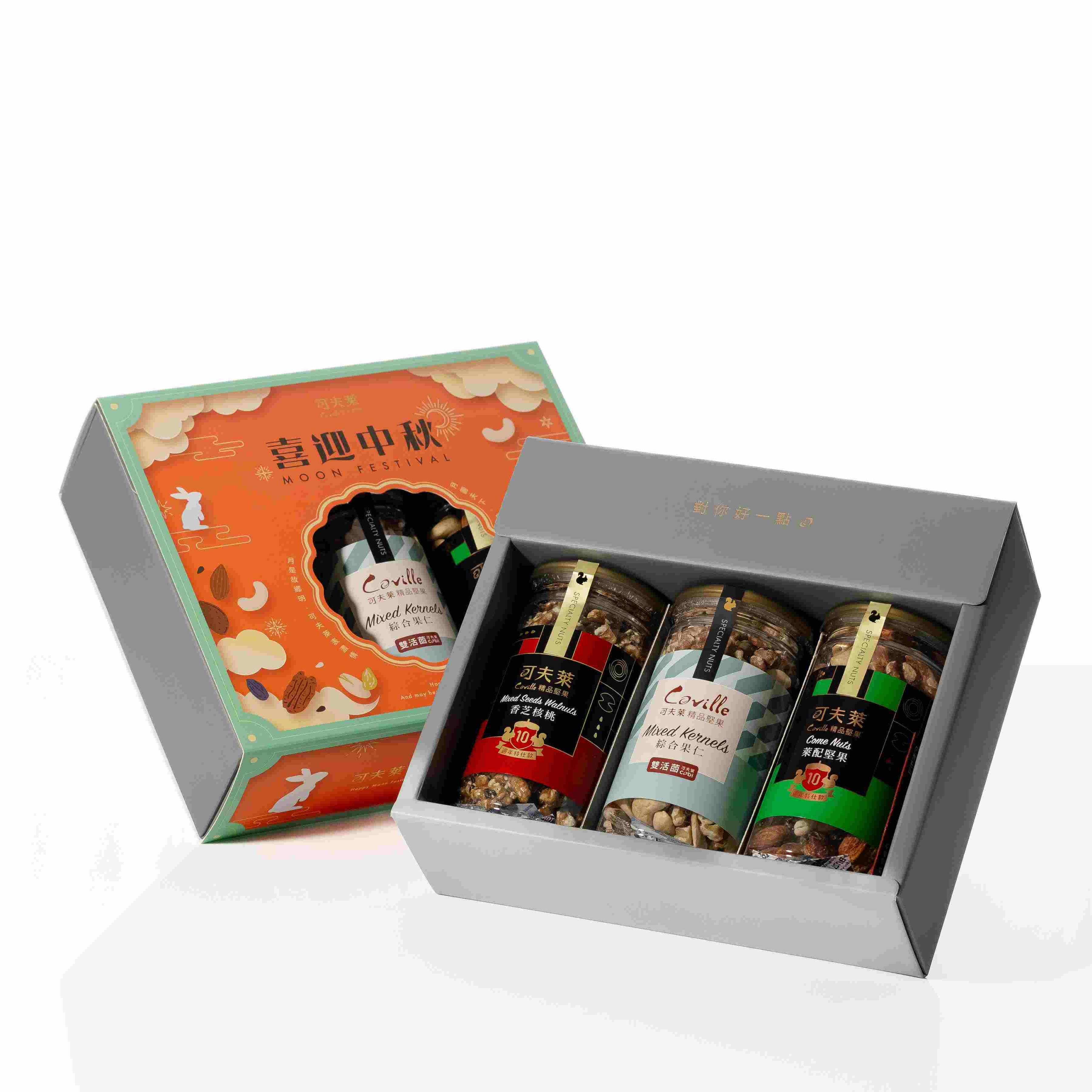 【可夫萊精品堅果】莓好時光禮盒-穀粉手拿包10入+雙活菌綜合果仁+莓好杏條+堅果餅乾(附贈提袋)