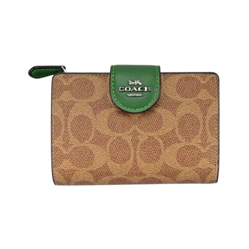[平輸版] 【COACH】焦糖色荔枝紋卡其C Logo PVC二合一卡夾皮夾 真品平輸