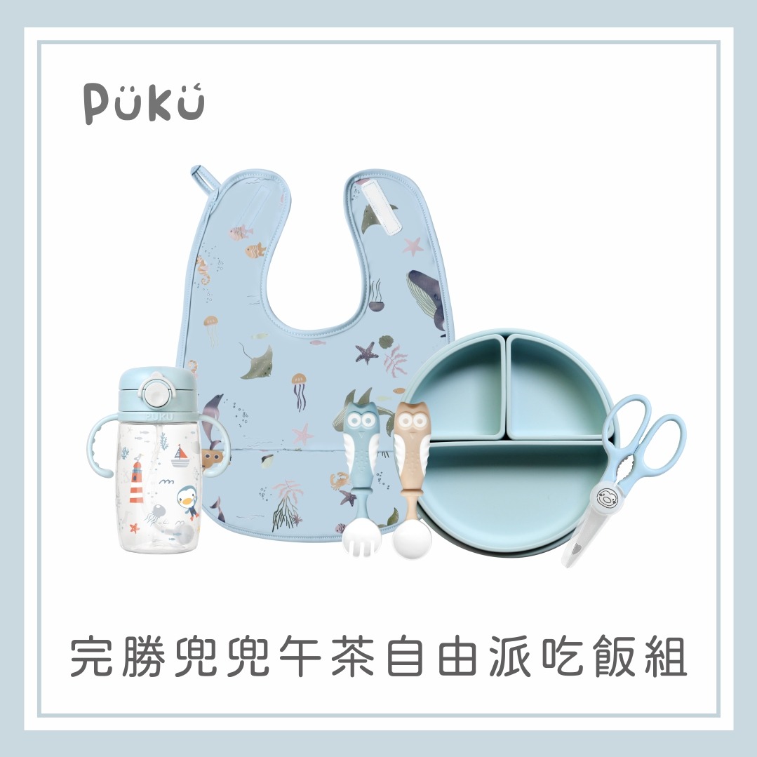 【PUKU】完勝兜兜鉑金餐盤吃飯組(藍莓)│新生兒禮、彌月禮、周歲禮│