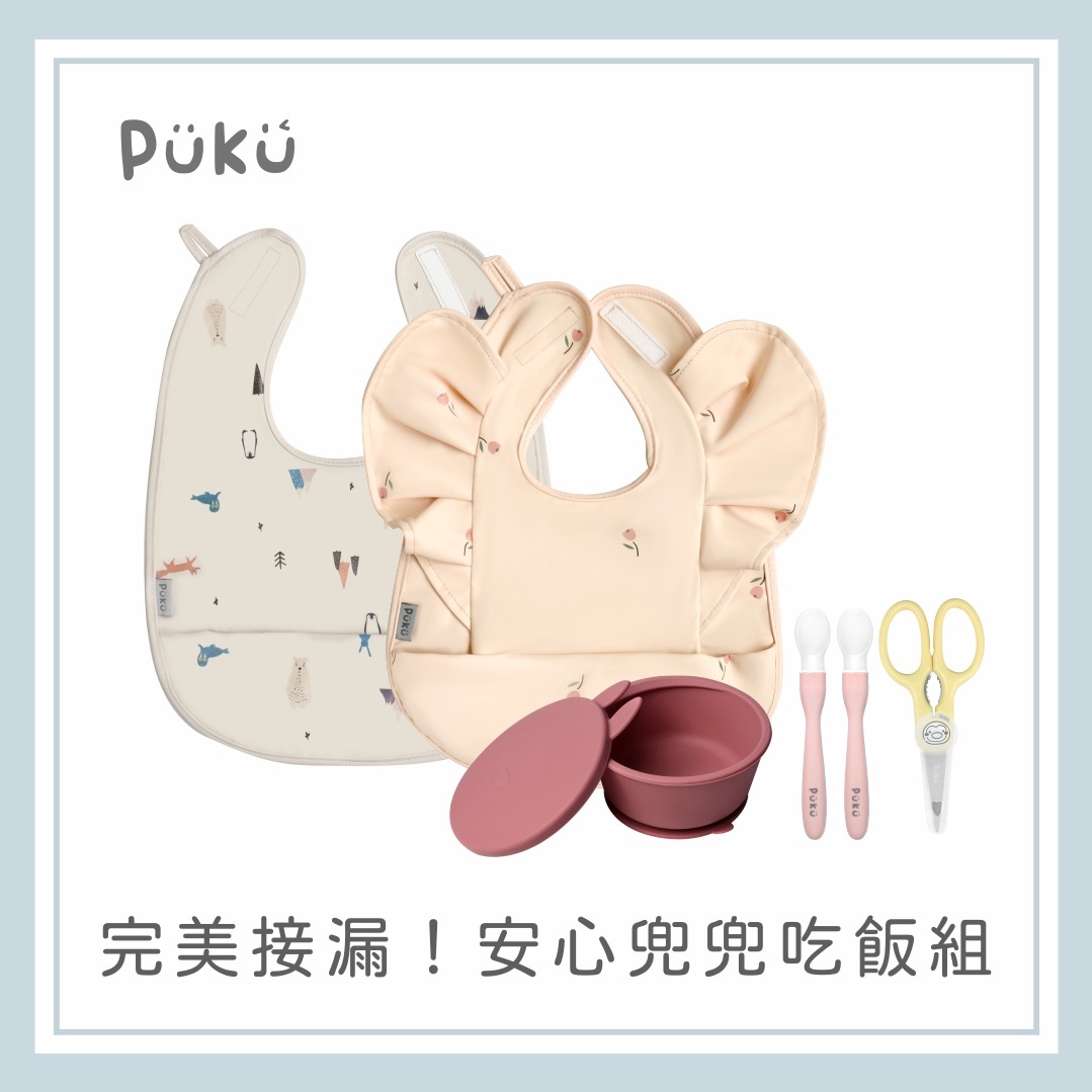 【PUKU】完美接漏!安心兜兜吃飯組(藍綠)│新生兒禮、彌月禮、周歲禮│