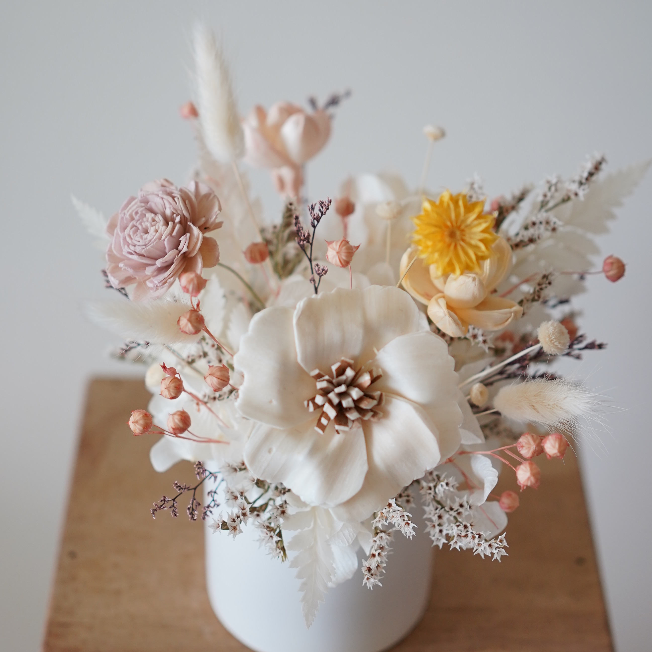 【Blooming.sein 林粼花藝設計】情人節快樂💕 擴香花盆花 乾燥盆花 粉白色系 擴香花 情人節 生日 畢業 節日禮物