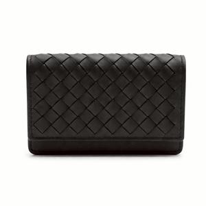 [平輸版]BOTTEGA VENETA經典大編織小羊皮對開卡片夾(黑色)真品平輸