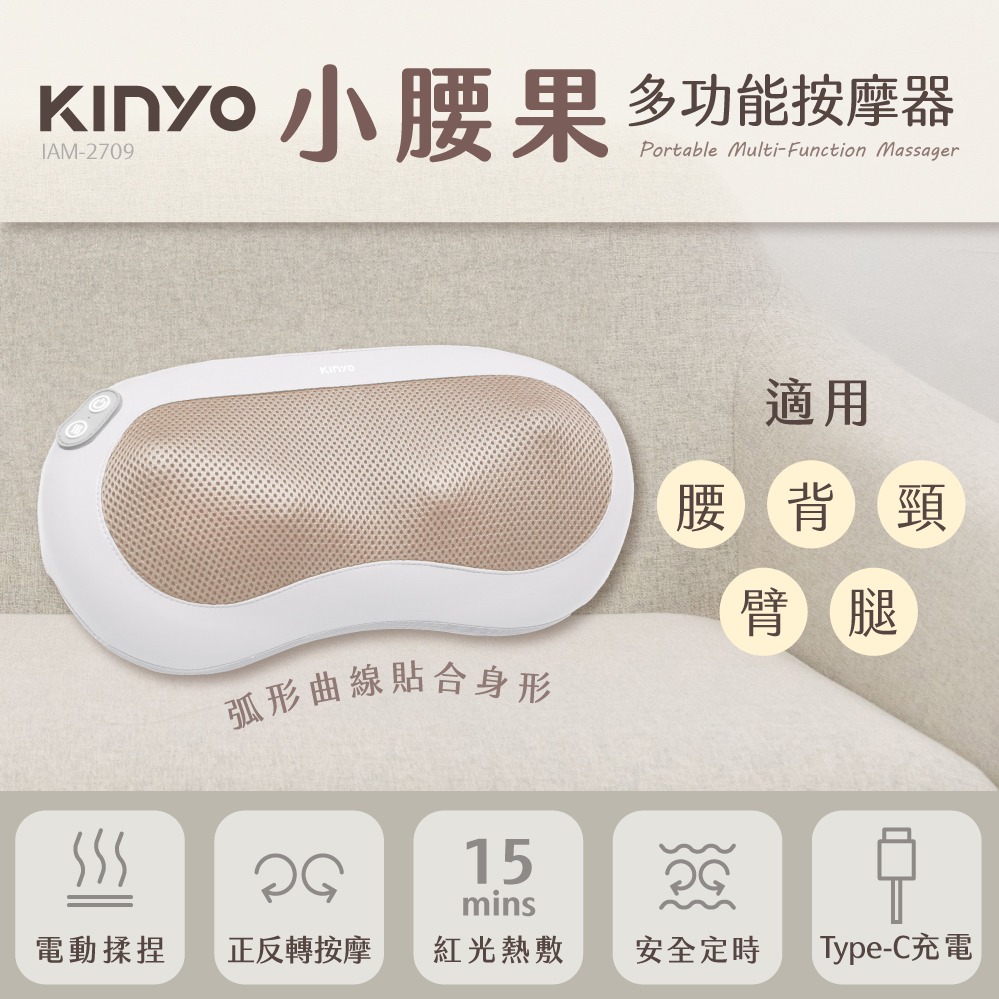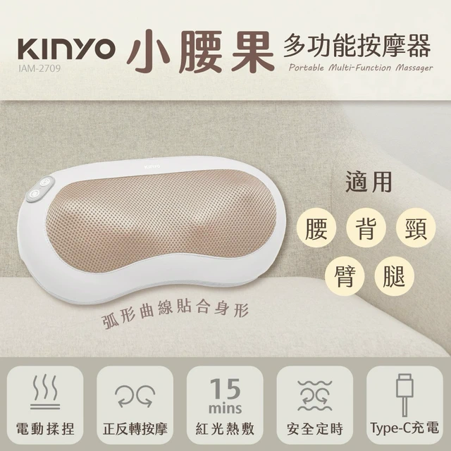新年少痠痛・日子更輕鬆【KINYO】 隨時躺電動腰背按摩枕 (IAM-2704) 生日禮物 肩頸 按摩 紓壓 長輩送禮